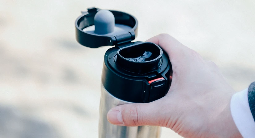 The lid locks and unlocks with a simple switch, allowing you to drink easily with one hand. The raised mouthpiece allows for comfortable sipping.