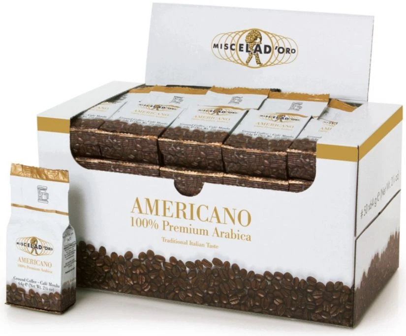 Miscela d’Oro Americano Premium 100 % Arabica coffee blend with an intense, sweet and delicate aroma that incorporates all the characteristics of a great Italian coffee. Top quality Arabica coffee from Central and South America.